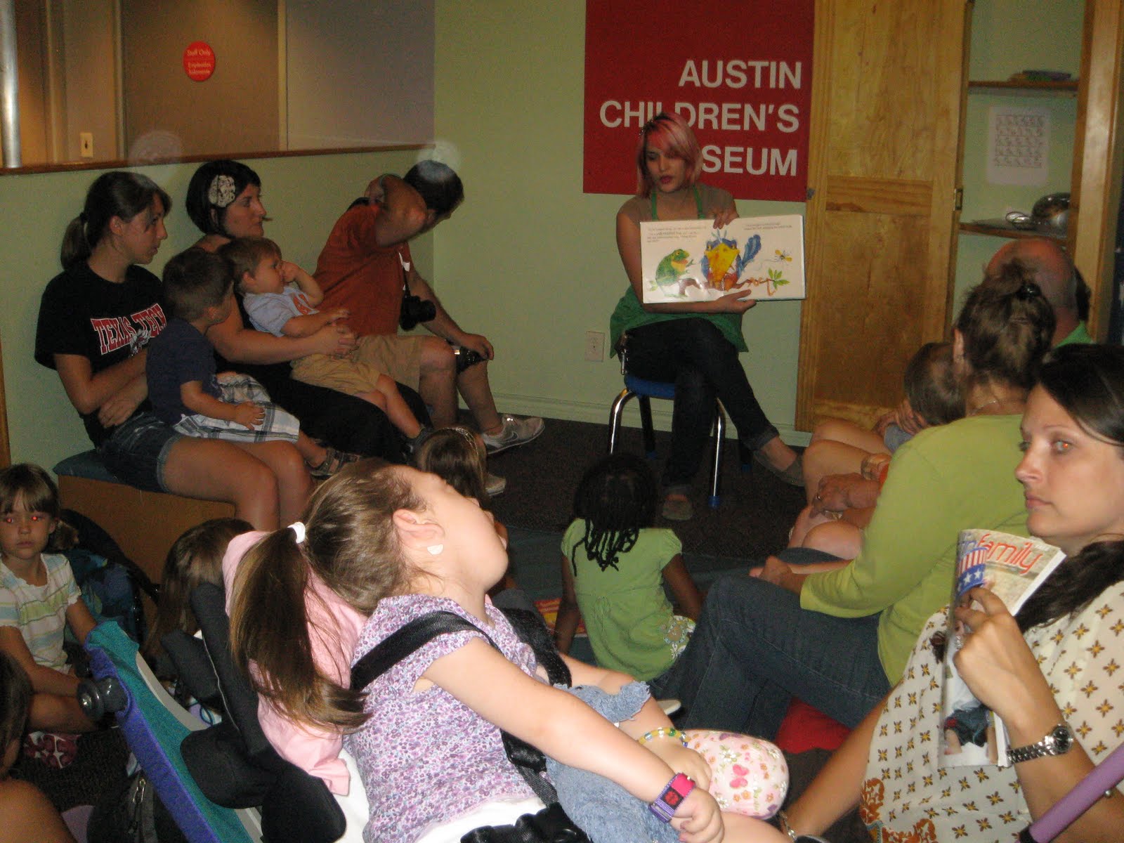 After lunch we went downtown. Casey was able to listen to story time at the Children’s Museum. They read four stories. Casey payed attention and seemed to really enjoy all of them. After the stories we checked out the rest of the museum. She was not quite as into the rest. It was loud, and crowded. I think between being out of the house for a while and all the noise and people it was just too much for her. I picked her up for a little bit and she calmed down. When we asked if she wanted to go home though, she gave a definite “YES”. On the way to the car she saw a waterfall (in the city hall parking garage of all places) that she thought was kind of cool.