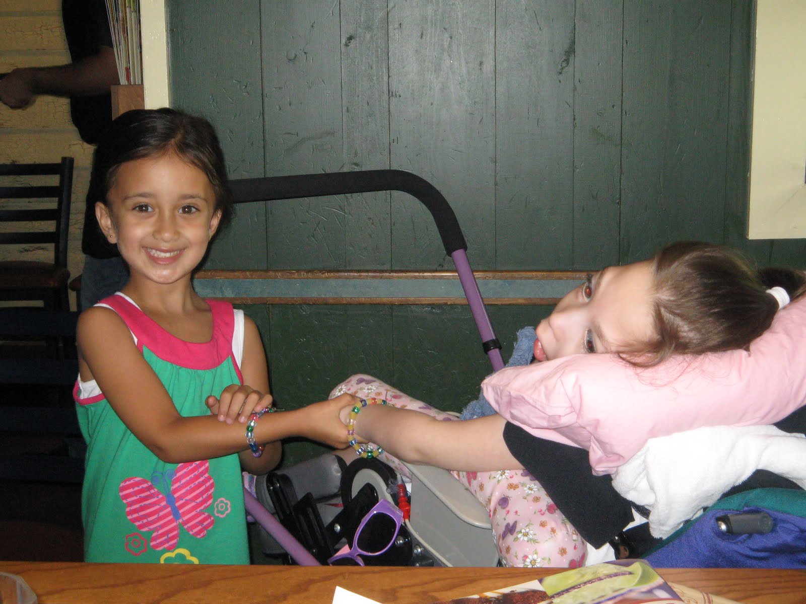 We have been so busy this summer. We have a few weeks with fewer appointments so we decided to have some fun activities planned for the princess. Today we met some friends for lunch at Casey’s favorite restaurant. Her friend made her a beautiful bracelet with beads and pasta. In the picture they are modeling their matching bracelets. Very cute 🙂