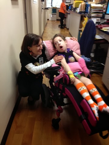 On Halloween Casey made her rounds visiting all of her doctors’ offices. She has been doing this every year for a while now. It’s a special day for her, and one that we look forward to all year. She gets all dressed up and they get to see her as a visitor instead of a patient. Her doctors and their staff really look forward to seeing her come by. We make little goodie bags and deliver them with a little note thanking everyone for all that they do for Casey each year. They usually have stickers and other fun stuff that she gets to take home in her trick-or-treat bag.