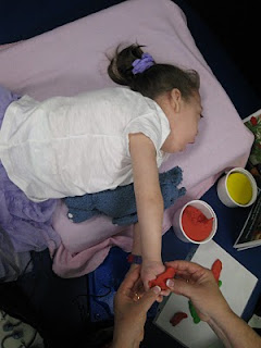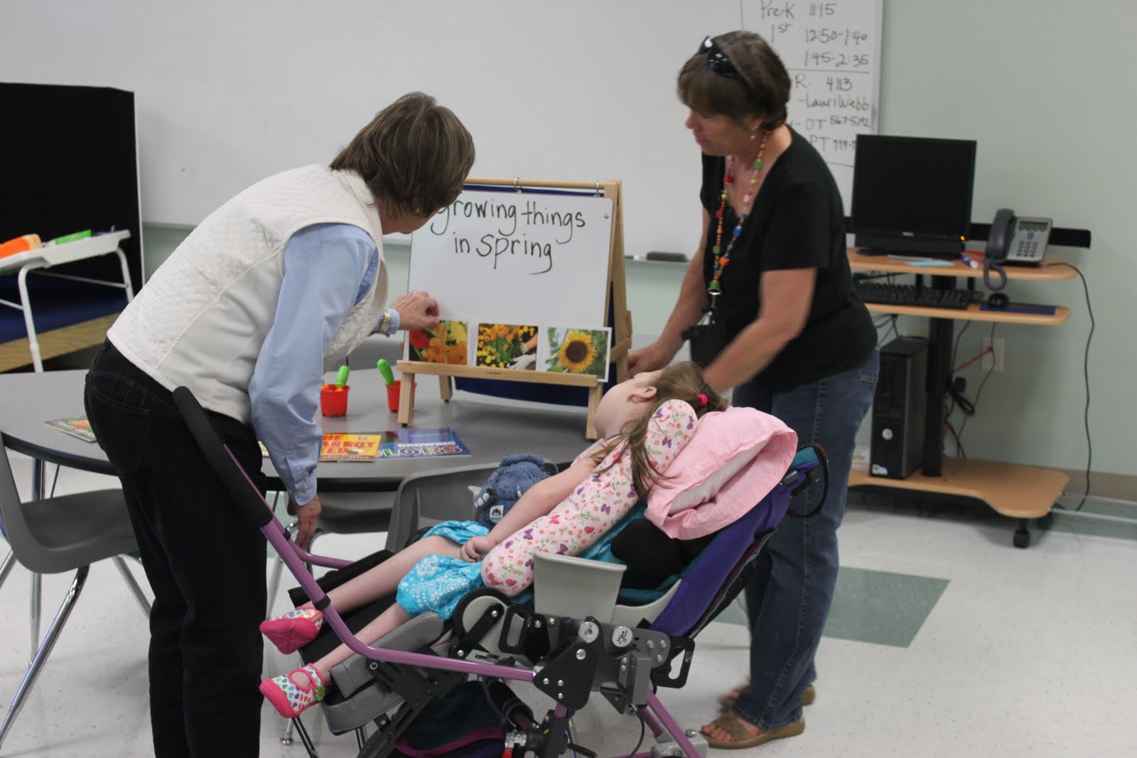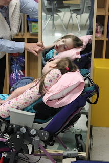 It’s official, Casey is a big girl now. She had her first day of school on Friday. She is just doing 1 hour 2 days a week for now, but it’s a start. She seemed to really like it. Her first day was more just to let her see things and finalize all the documents and stuff the school needed. Her second day this week she had her first lesson. She is learning about Spring and things that grow. She made a flower out of clay. Her nurse stays with her, and I wait down the hall. The classroom is great. The school did a great job getting all the equipment Casey needs to be safe and comfortable. Hopefully next year she can have a few other students join her. Here are some pictures of her first and second day.