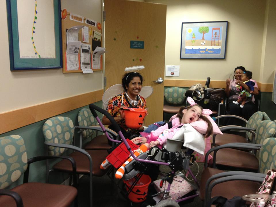 Casey LOVES Halloween. Each year we get Casey dressed up and deliver goodies to all of her doctors. She has so much fun. It’s nice to see the doctors for fun reasons as opposed to a patient. The staff loves getting to see Casey all dressed up. We have done it enough years now that some of them expect us and look forward to the visit.