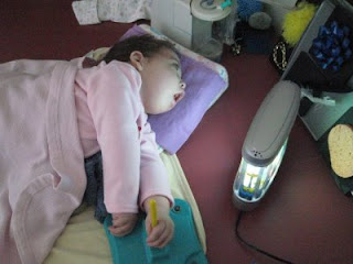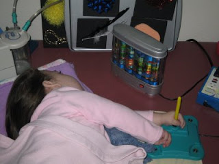 Casey has been working really hard to use some of her facial muscles more. She is not quite smiling, but she is really twitching the sides of her mouth a lot. I love watching her learn new things. She is just such an awesome little princess.
