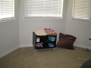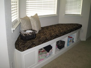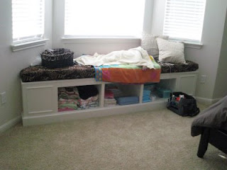 A lot of window seats have flip lids to get in for storage. Being that we want to use this as a diaper stand for Casey we really wanted open accessible storage. Tim made some really deep cubbies that are perfect. We can store all of Casey’s diapers, wipes, blankets, drool cloths, wedges, etc. I am so happy; this makes storage and diapering so much easier.