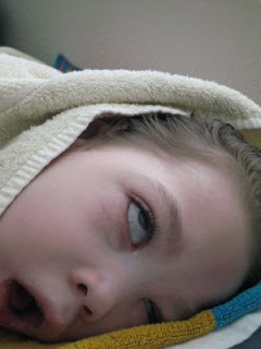 In addition to using it for diapering we also can use it for getting her dry and dressed after her bath. You can barely see her hand and head sticking out of the towel, but here she is using her her new bench after her bath.
