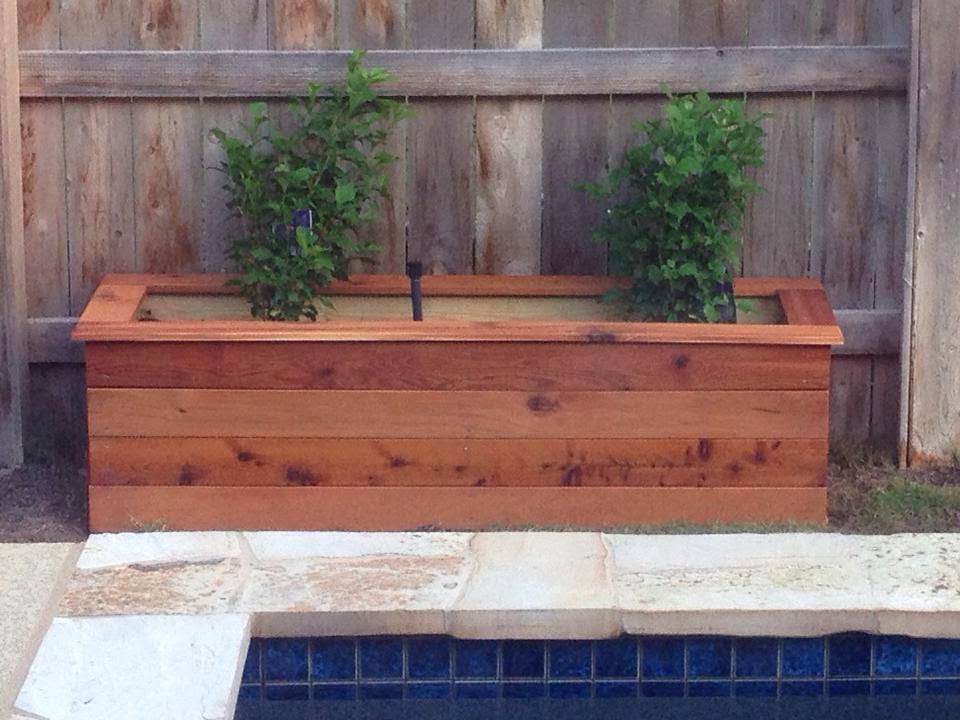 Tim built us some planters to go around the pool. The plants in them are pretty small right now, but in a year or so they are going to look great. We started to go with bamboo, but it was more maintenance than we had time to deal with. If we just let them go it would be too bushy and block the walkway. We ended up going with Althea instead. Tim and I both really like these and they grow to be the perfect size.
